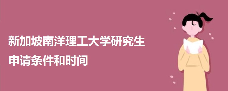 新加坡南洋理工大学研究生申请条件是:优异的本科成绩和院校背景,英文雅思6.5分,综合实力拿过奖学金、交换生经验、参加比赛、获得奖项、实习经验等。申请时间:每个专业申请开始的时间不一样,一般为10月开始,到第二年的2月结束。