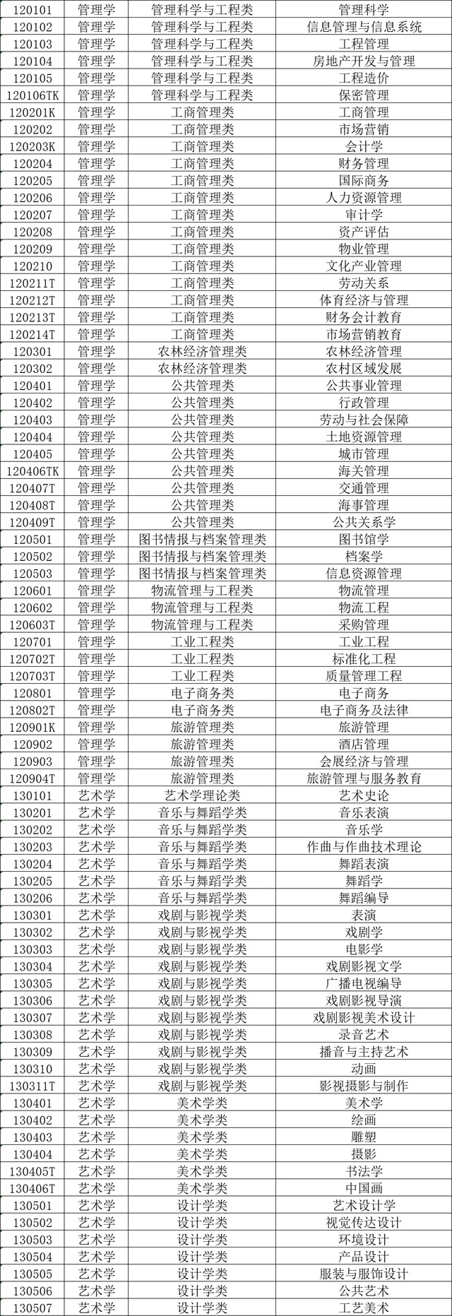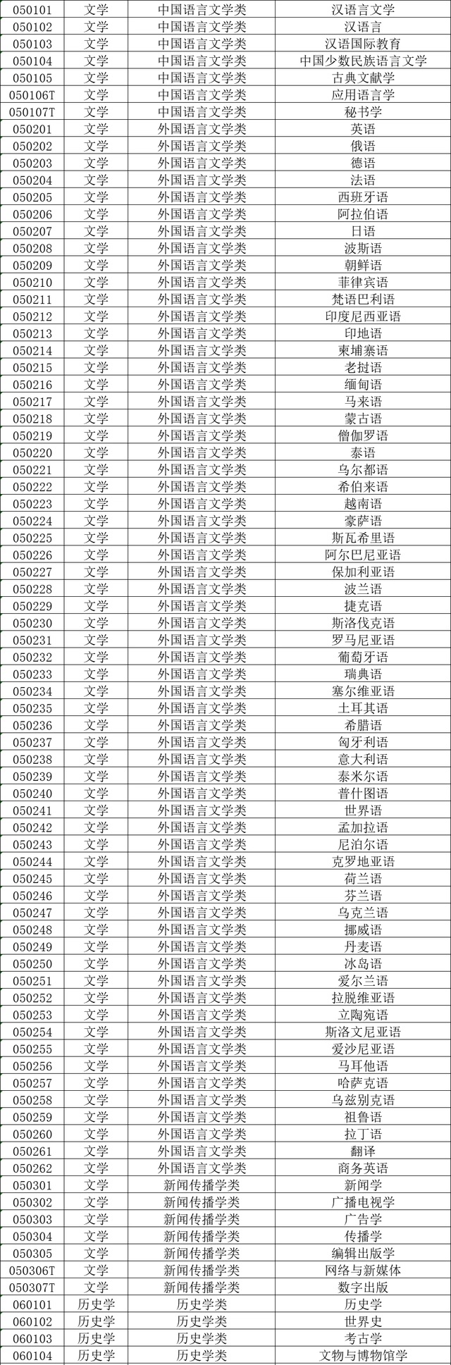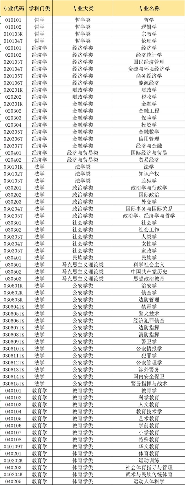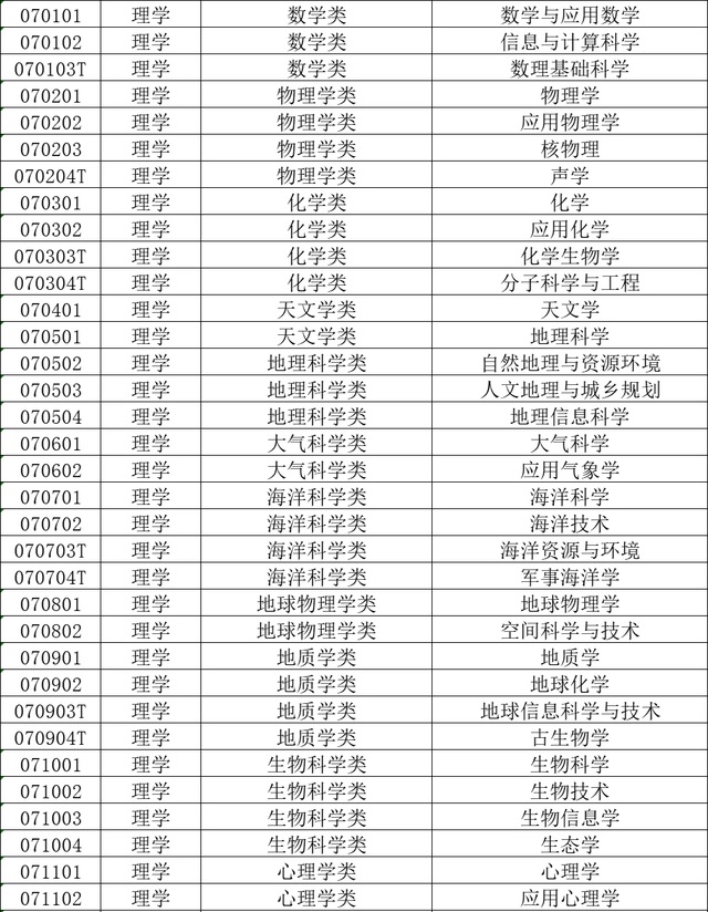 本科学科门类:哲学、经济学、法学、教育学、文学、历史学、理学、工学、农学、医学、管理学、艺术学、军事类。